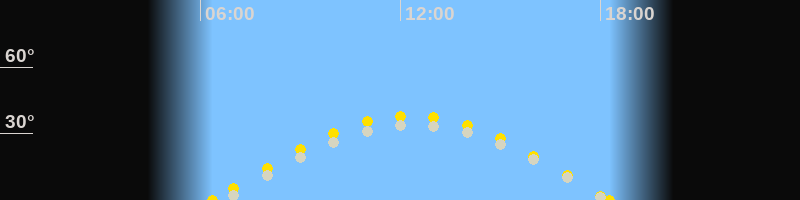 Höchster Sonnenstand (Kulmination)12:18 Uhr (h = 38°)
