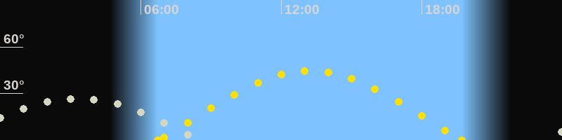 | Sonnenaufgang | 06:43 Uhr im Osten (αAz = 80.9°) |