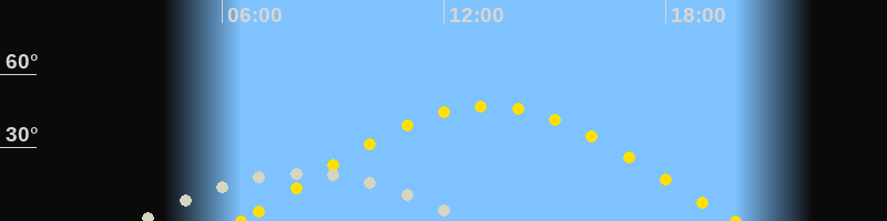 | Sonnenaufgang | 06:30 Uhr im Osten (αAz = 77.3°) |