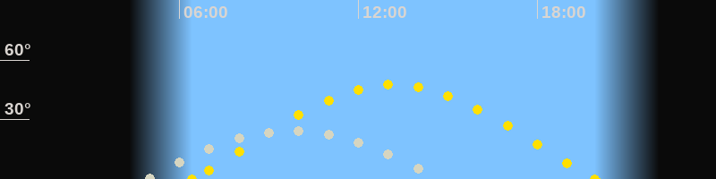 | Sonnenaufgang | 06:26 Uhr im Osten (αAz = 76.1°) |
