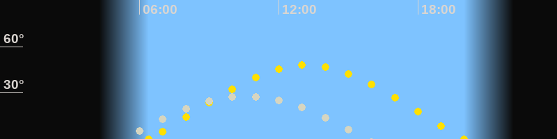 | Sonnenaufgang | 06:24 Uhr im Osten (αAz = 75.5°) |