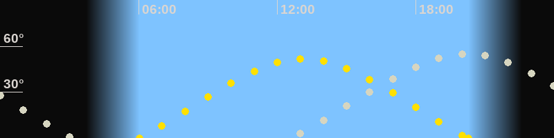| Sonnenaufgang | 06:01 Uhr im Osten (αAz = 69.3°) |