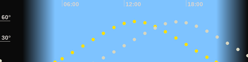 | Höchster Sonnenstand (Kulmination) | 13:06 Uhr (h = 59.1°) |