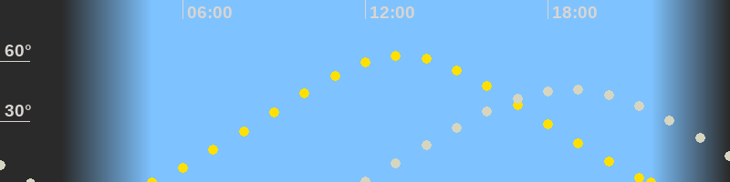 | Höchster Sonnenstand (Kulmination) | 13:11 Uhr (h = 62.7°) |