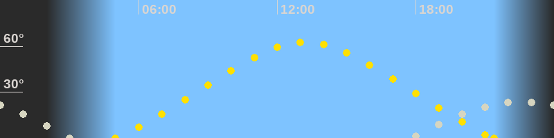 | Höchster Sonnenstand (Kulmination) | 13:12 Uhr (h = 62.7°) |