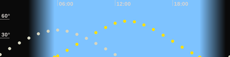 | Höchster Sonnenstand (Kulmination) | 13:16 Uhr (h = 56.7°) |