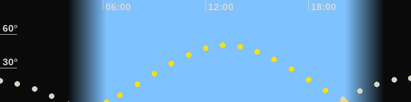 | Sonnenaufgang | 06:13 Uhr im Osten (αAz = 71.5°) |