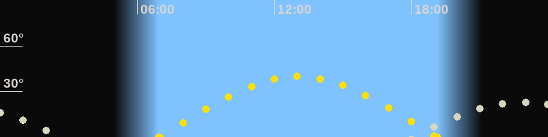 | Höchster Sonnenstand (Kulmination) | 13:03 Uhr (h = 39.9°) |