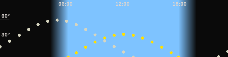 | Höchster Stand (Kulmination) | 05:55 Uhr (h=58.6°) |