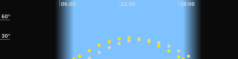 | Höchster Stand (Kulmination) | 14:10 Uhr (h=30.1°) |