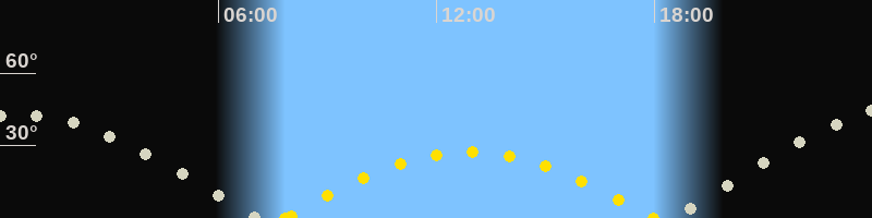 | Höchster Sonnenstand (Kulmination) | 12:54 Uhr (h = 27.4°) |
