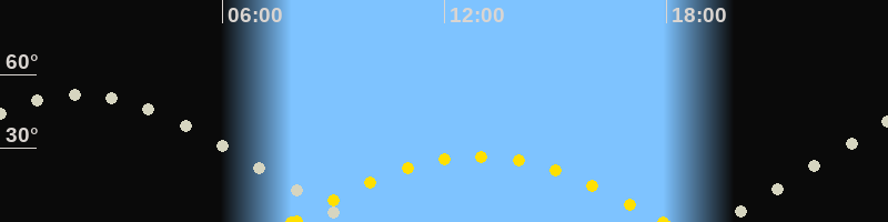 | Höchster Sonnenstand (Kulmination) | 12:54 Uhr (h = 26.7°) |
