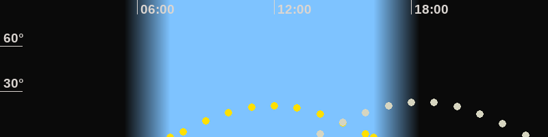 | Höchster Stand (Kulmination) | 18:20 Uhr (h=23°) |
