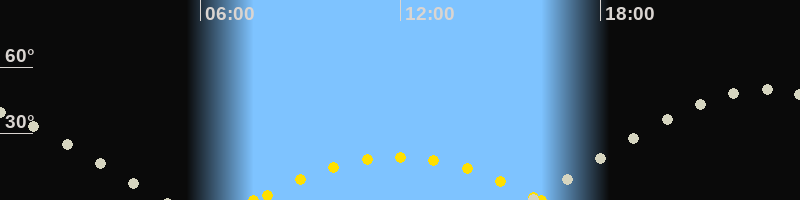 | Höchster Sonnenstand (Kulmination) | 11:56 Uhr (h = 19.3°) |