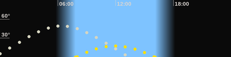 | Höchster Stand (Kulmination) | 06:27 Uhr (h=49.4°) |