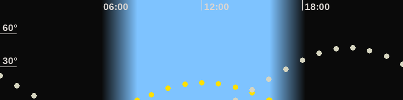 | Höchster Sonnenstand (Kulmination) | 12:06 Uhr (h = 15.9°) |