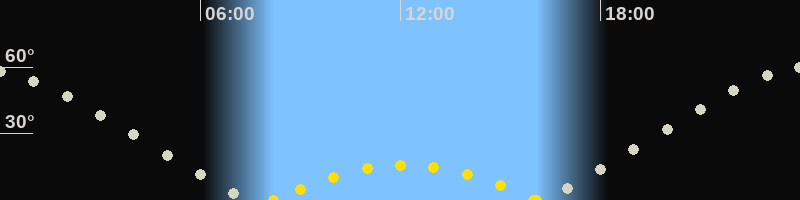 | Höchster Sonnenstand (Kulmination) | 12:08 Uhr (h = 15.8°) |