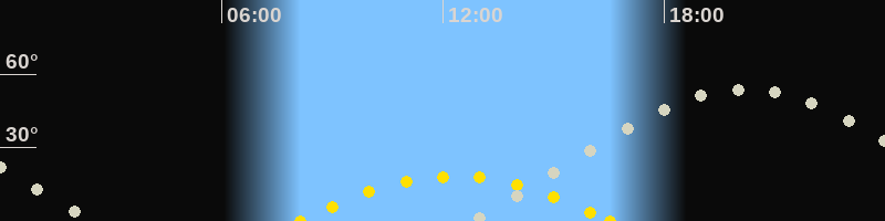 | Höchster Sonnenstand (Kulmination) | 12:19 Uhr (h = 18.3°) |