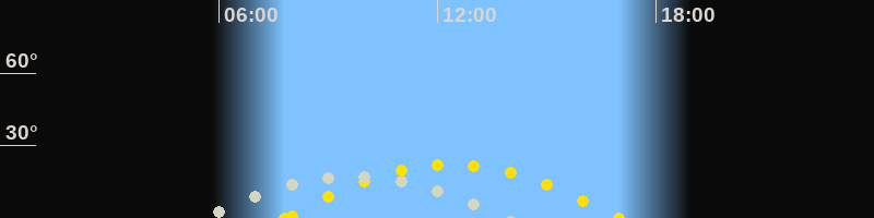 | Höchster Sonnenstand (Kulmination) | 12:23 Uhr (h = 22.2°) |