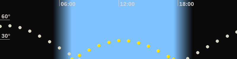 | Höchster Sonnenstand (Kulmination) | 12:23 Uhr (h = 28.4°) |