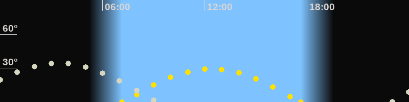 | Höchster Sonnenstand (Kulmination) | 12:23 Uhr (h = 29.5°) |