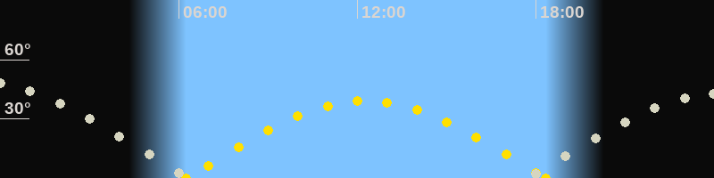 Höchster Sonnenstand (Kulmination)12:17 Uhr (h = 39.1°)