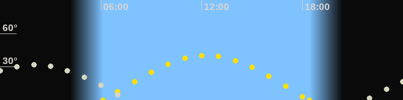 Höchster Sonnenstand (Kulmination)12:16 Uhr (h = 40.3°)