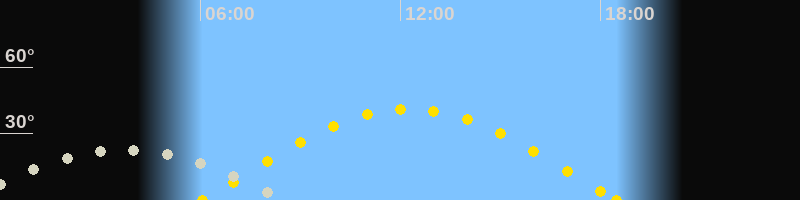 Höchster Sonnenstand (Kulmination)12:16 Uhr (h = 41.1°)