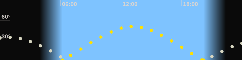 | Sonnenaufgang | 06:10 Uhr im Osten (αAz = 71.6°) |