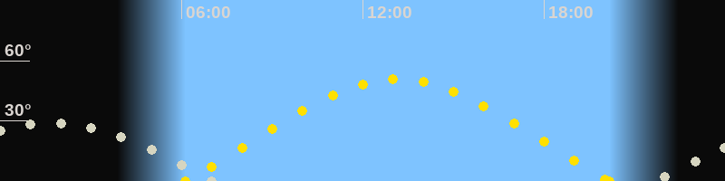| Sonnenaufgang | 06:08 Uhr im Osten (αAz = 71.1°) |