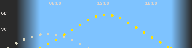 Höchster Sonnenstand (Kulmination)13:12 Uhr (h = 62.7°)