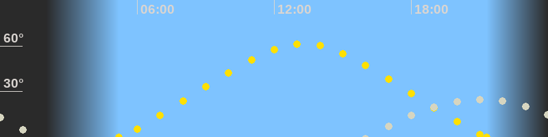 | Höchster Sonnenstand (Kulmination) | 13:15 Uhr (h = 61.4°) |