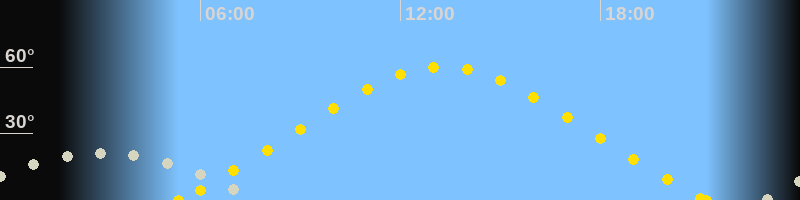 Höchster Sonnenstand (Kulmination)13:16 Uhr (h = 60.1°)