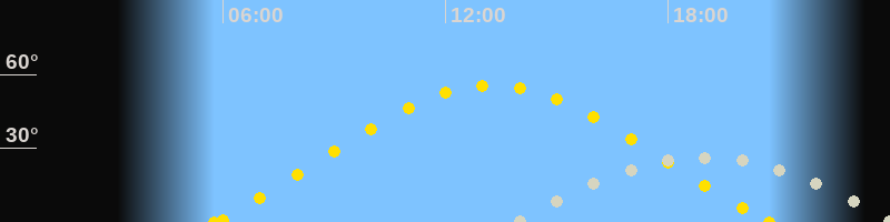 | Höchster Sonnenstand (Kulmination) | 13:16 Uhr (h = 55.7°) |