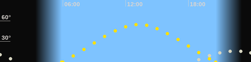 | Höchster Sonnenstand (Kulmination) | 13:15 Uhr (h = 54.5°) |