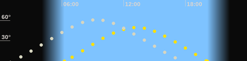 | Höchster Stand (Kulmination) | 09:18 Uhr (h=61.1°) |