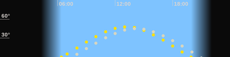 | Sonnenaufgang | 06:23 Uhr im Osten (αAz = 75.4°) |