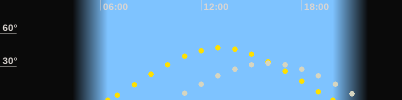 | Sonnenaufgang | 06:26 Uhr im Osten (αAz = 76.5°) |