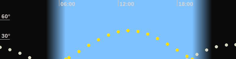 | Höchster Sonnenstand (Kulmination) | 13:06 Uhr (h = 43.8°) |