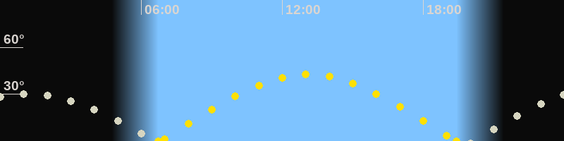 | Höchster Sonnenstand (Kulmination) | 13:05 Uhr (h = 42.7°) |