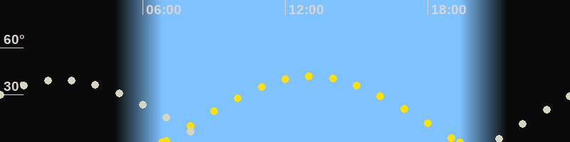| Sonnenaufgang | 06:48 Uhr im Osten (αAz = 84.9°) |