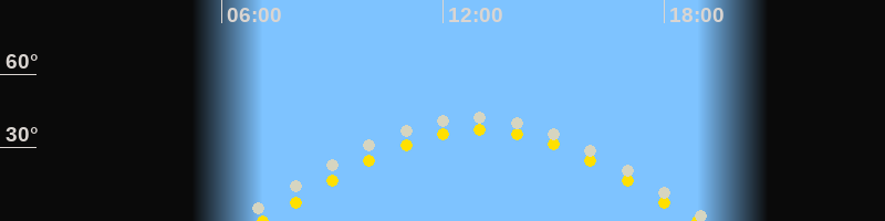| Sonnenaufgang | 07:06 Uhr im Osten (αAz = 92.3°) |