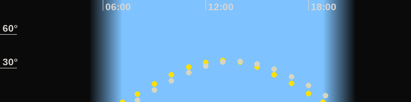 | Sonnenaufgang | 07:08 Uhr im Osten (αAz = 92.9°) |