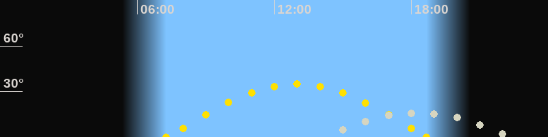 | Sonnenaufgang | 07:16 Uhr im Osten (αAz = 96°) |