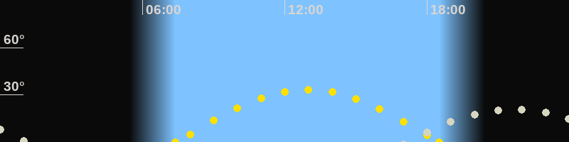 | Höchster Sonnenstand (Kulmination) | 12:57 Uhr (h = 33.4°) |