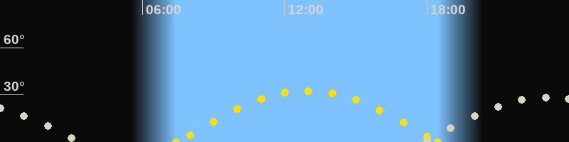 | Höchster Sonnenstand (Kulmination) | 12:57 Uhr (h = 32.6°) |