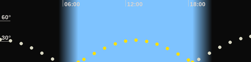 | Sonnenuntergang | 18:23 Uhr im Westen (αAz = 258.9°) |