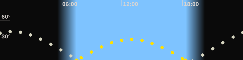 | Höchster Sonnenstand (Kulmination) | 12:56 Uhr (h = 31.1°) |