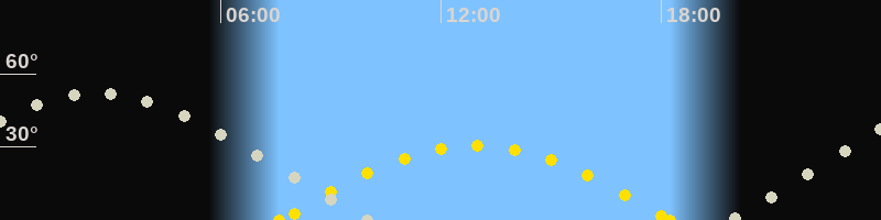 | Höchster Sonnenstand (Kulmination) | 12:55 Uhr (h = 30.4°) |
