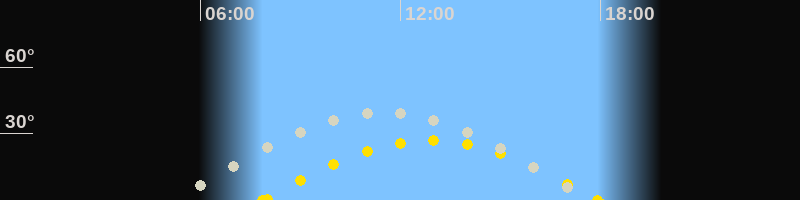 | Höchster Stand (Kulmination) | 11:30 Uhr (h=39.9°) |